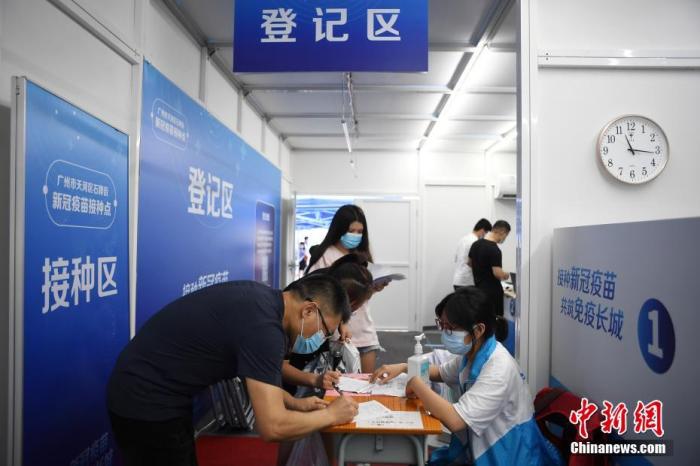 6月21日,广东省广州市,市民在天河区石牌村董氏祠堂新冠疫苗临时接种点登记、确认个人信息。中新社记者 陈楚红 摄