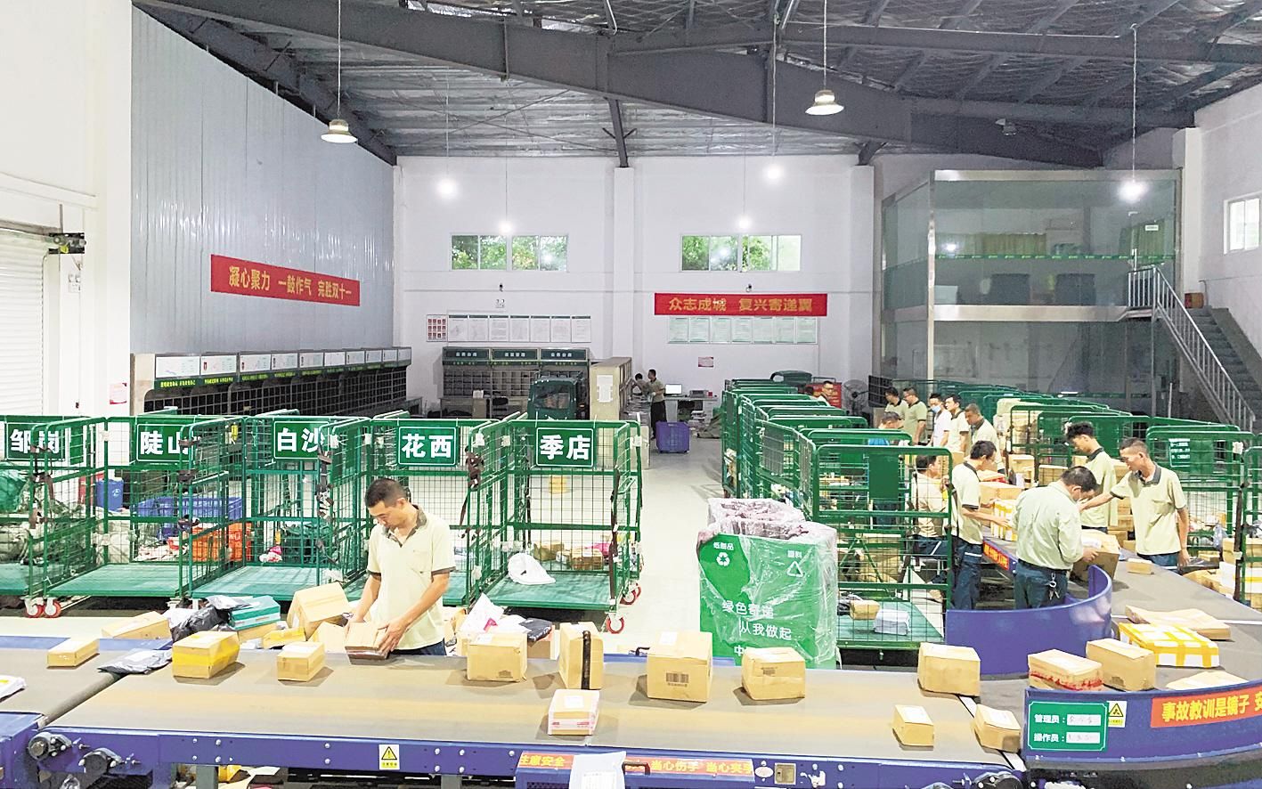 湖北日报全媒记者看到,在3000多平方米的县级仓储中心,6家公司的快递货物集中处理,自动化设备扫码分拣,物流车辆兵分多路。3小时内,货物将被运送到乡镇中转站,再分发至村级站点。