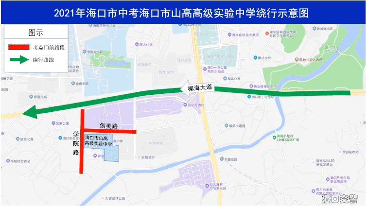 (三)途经学院路海口山高高级实验中学门前路段的货车驾驶人,绕行椰海大道。
