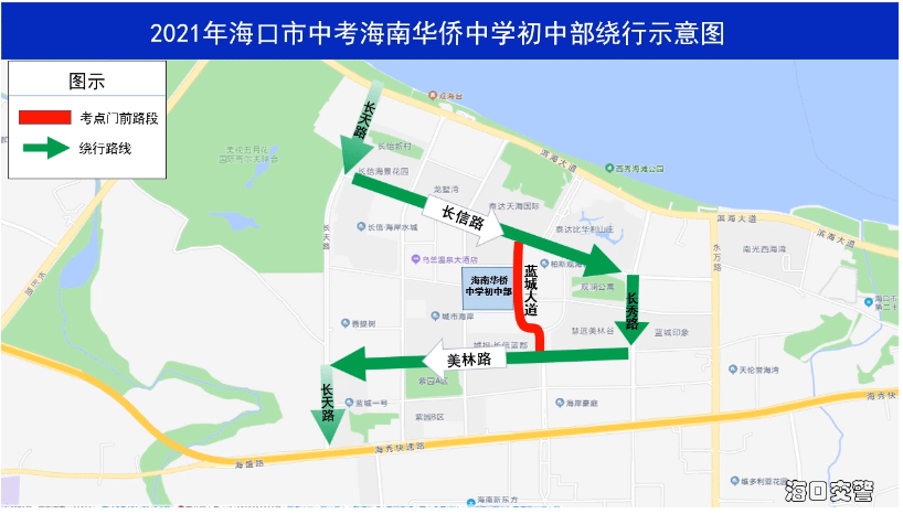 (五)途经蓝城大道海南华侨中学(初中部)门前路段的货车驾驶人,绕行长信路、长秀路、美林路。