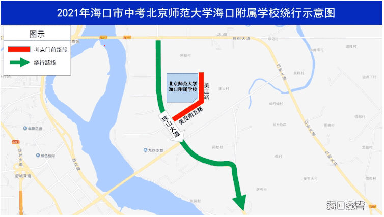 (一)途经美灵南五路、美庄路北京师范大学海口附属学校门前路段的货车驾驶人,绕行琼山大道。