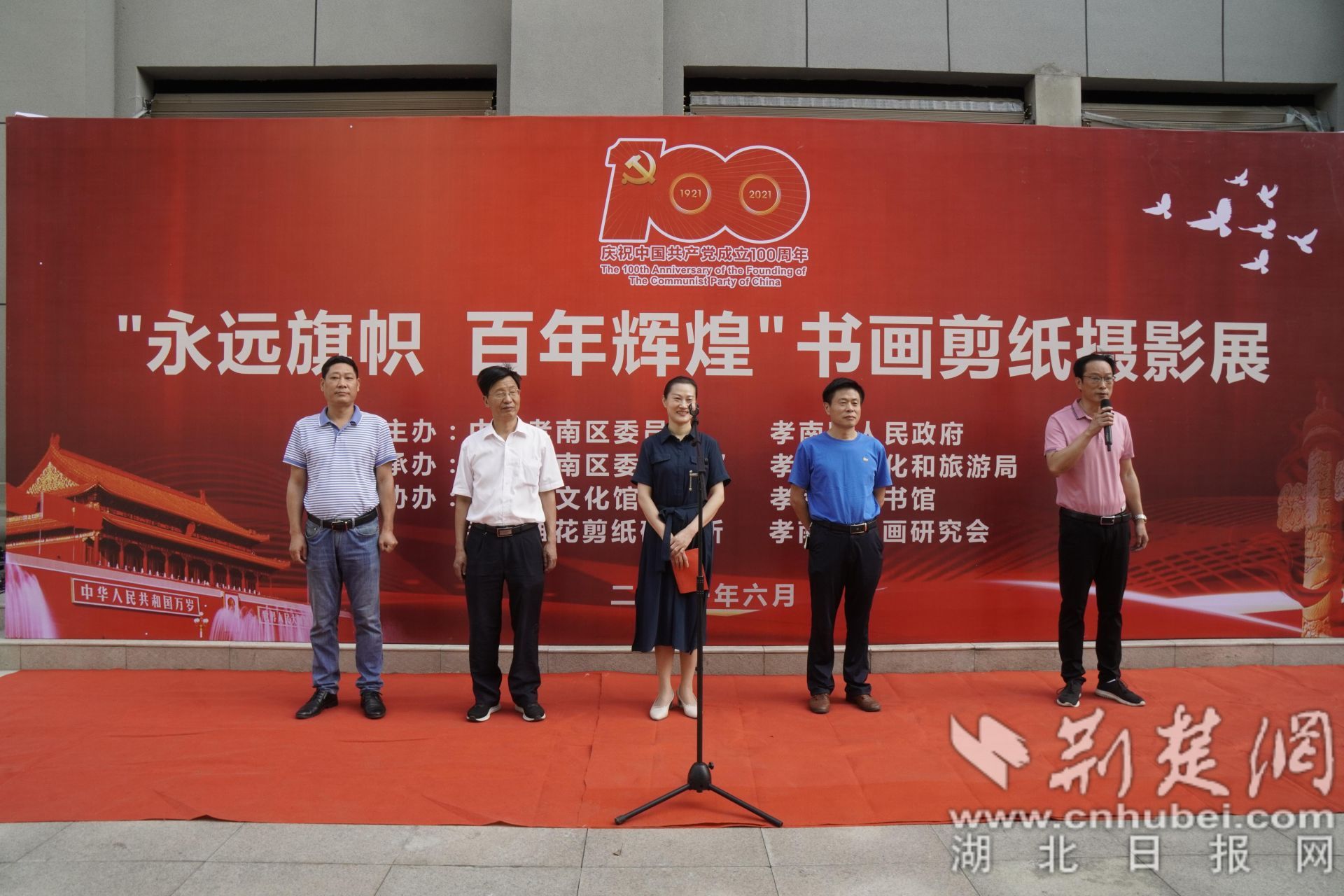 荆楚网(湖北日报网)讯(记者李传维 通讯员王伟)6月24日,为庆祝中国共产党成立100周年,孝南区举办“永远旗帜 百年辉煌”书画剪纸摄影展。