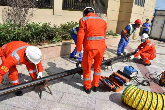 在接到龙腾国际小区物业公司的报警电话后,新洲华润燃气、新洲区区城镇燃气专业委员会迅速启动应急救援预案,组织现场警戒疏散、开展消防救援工作。燃气抢修组依据现场检测情况,关闭新道公路燃气管主控阀门及龙腾国际小区中压PE阀门,同时关闭龙腾国际小区各楼栋调压箱,并对管道内残留燃气进行放散。随着燃气抢修组的紧张抢修、检测、调试,现场最终恢复供气。