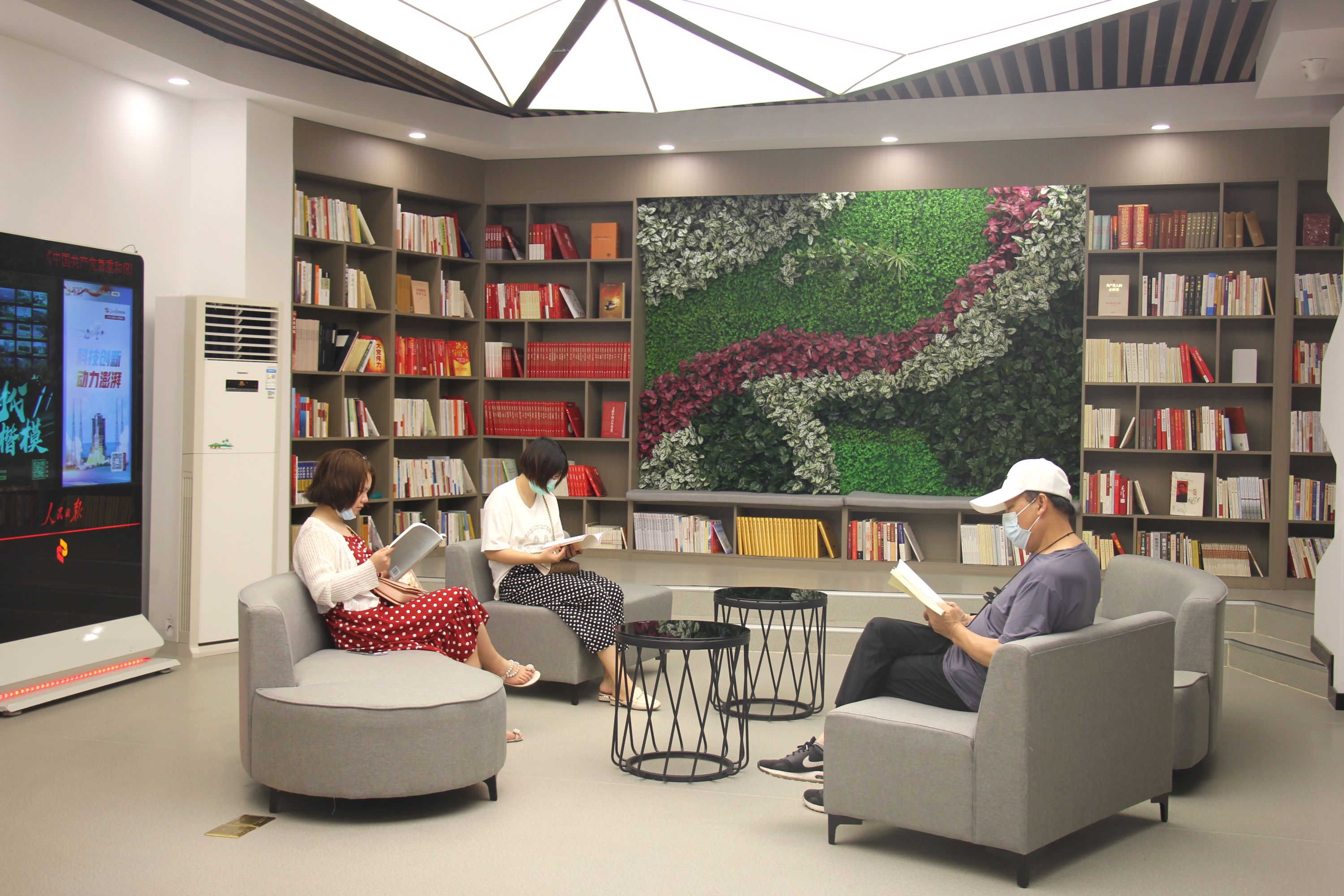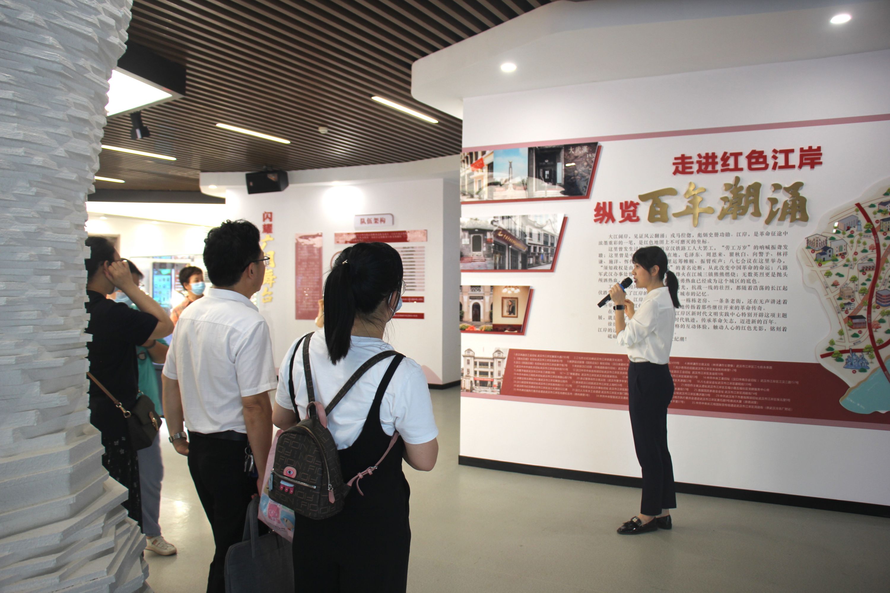 在“走进红色江岸 纵览百年潮涌”主题展前,参观者们纷纷拿起手机扫描二维码,跟随“江岸红色地图”线上打卡江岸区红色场馆,观看《红色江岸 百年潮涌》纪录片。展区一角的新时代文明实践中心加油站,也以3000余册的丰富藏书和宽敞明亮的温馨设计,受到参观者的热捧。