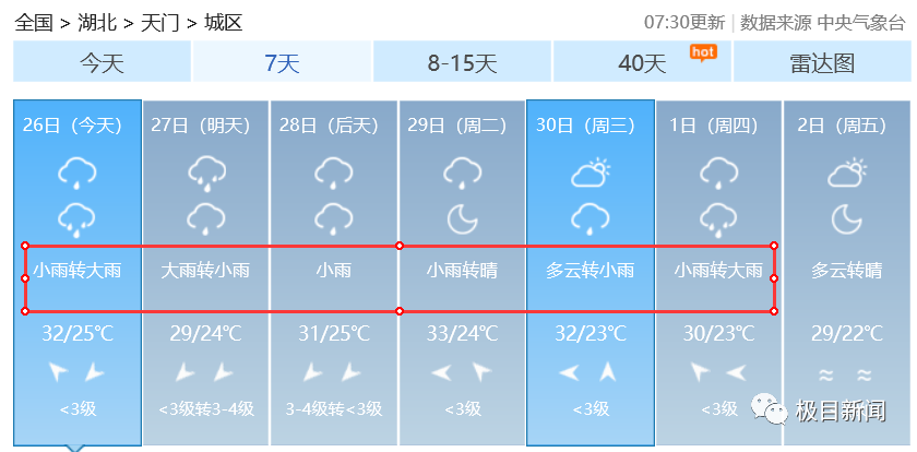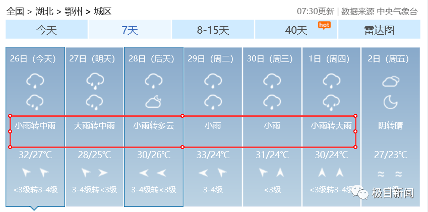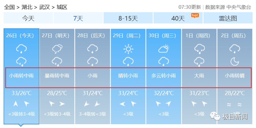 不仅是武汉,湖北中东部地区持续闷热,潜江、监利、崇阳等地昨日气温超35℃。