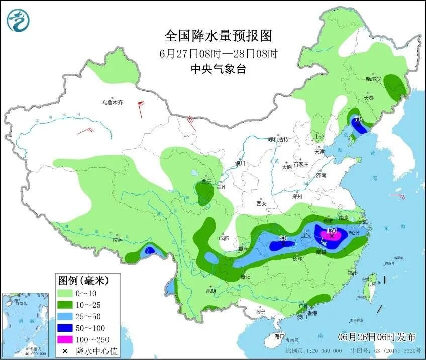 不仅是湖北遭遇强降雨,中央气象台最新预报,预计未来一周(6月26日至7月1日),我国南方地区将出现入汛以来最强降雨过程,浙江、福建、安徽、湖北、江西、湖南、广西、四川、重庆、贵州、云南等超过10省(市区)将出现大范围强降雨,上述部分地区累计雨量将达到100-300毫米,局地超过400毫米。