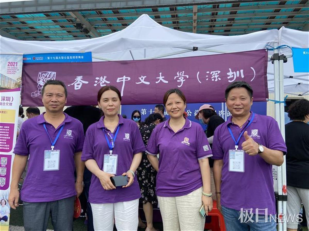 在香港中文大学(深圳)摊位前,武汉市民韩女士被家长们团团围住,咨询各种招生信息。事实上,韩女士并非学校的招生老师,而是前来帮忙的家长志愿者。今天在该校摊位前,有6名“工作人员”都为家长,他们答疑的专业程度,丝毫不逊于学校的招生人员。