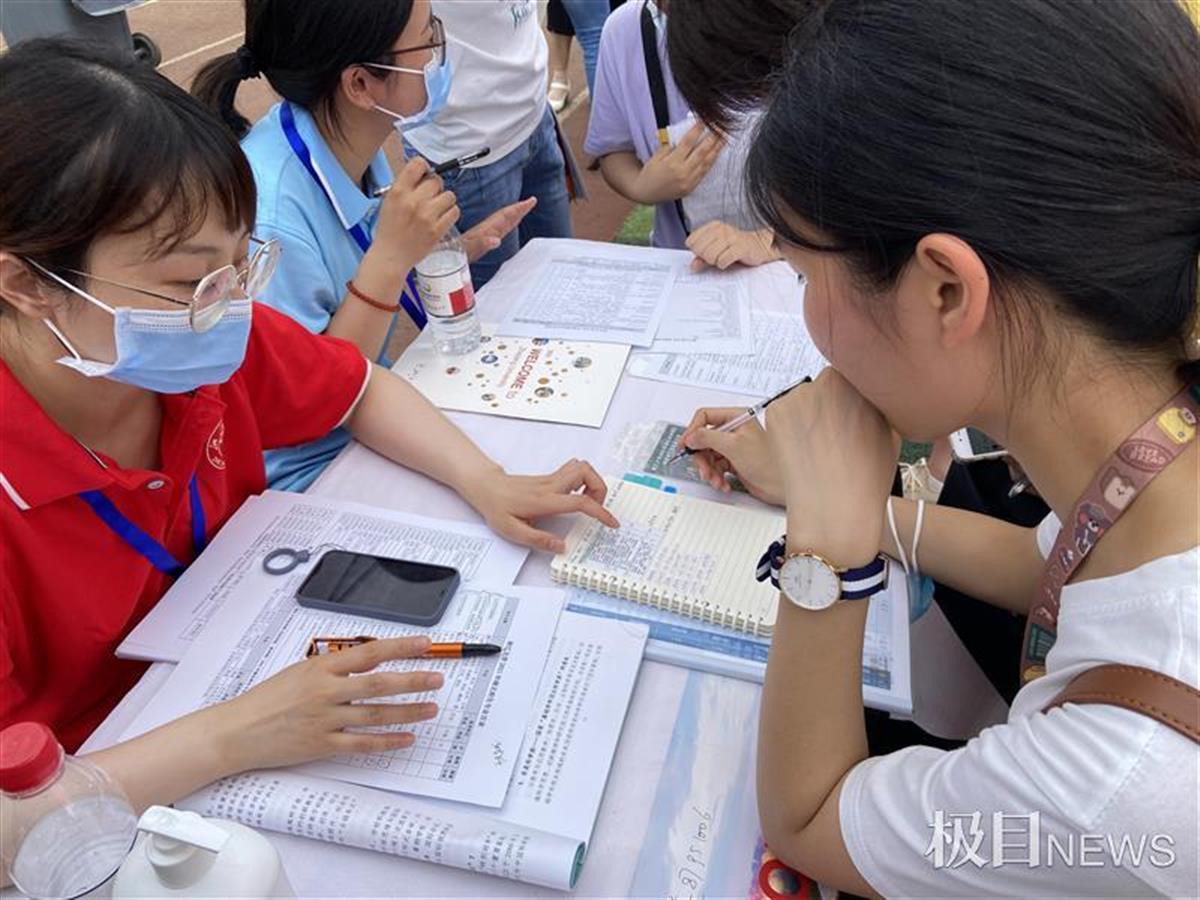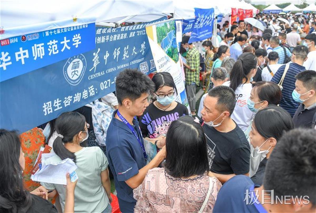 6月26日,由楚天都市报极目新闻主办的第十七届高招咨询会在武汉学院举行。北京大学、浙江大学、北京师范大学、武汉大学、华中科技大学、西安交通大学、哈尔滨工业大学、南京大学等省内外百余所高校的招生工作人员,现场为考生及家长答疑,引得5万人次前来咨询。记者发现,由于今年是新高考第一年,不少学生和家长带着笔和本子现场边问边做笔记,他们更多的是追问专业优势及填报技巧等问题。