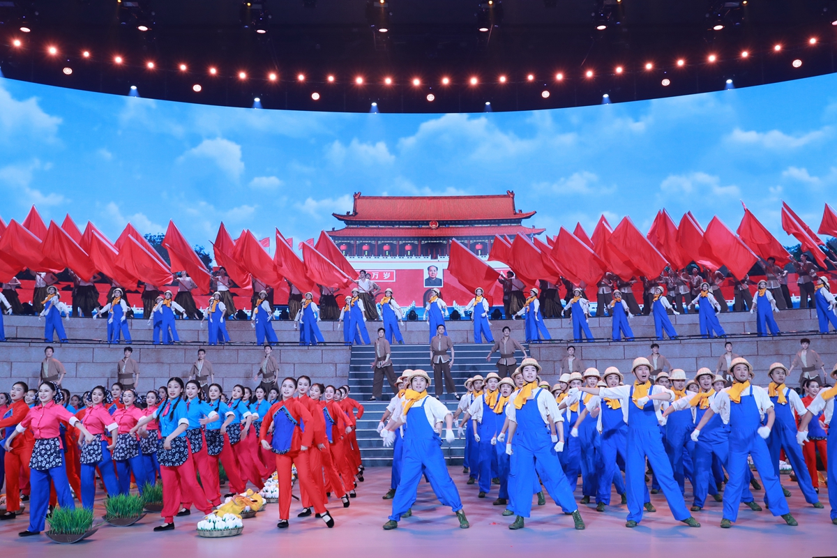 “唱支山歌给党听,我把党来比母亲。”撒叶儿嗬组合高亢豪放的歌声里,唱响了荆楚儿女对党的无限深情。《跟着共产党走》《强军战歌》等,传递出5775万湖北人民红心永向党、奋进新时代的壮志豪情。晚会在齐声合唱《没有共产党就没有新中国》的雄壮激昂歌声中结束。