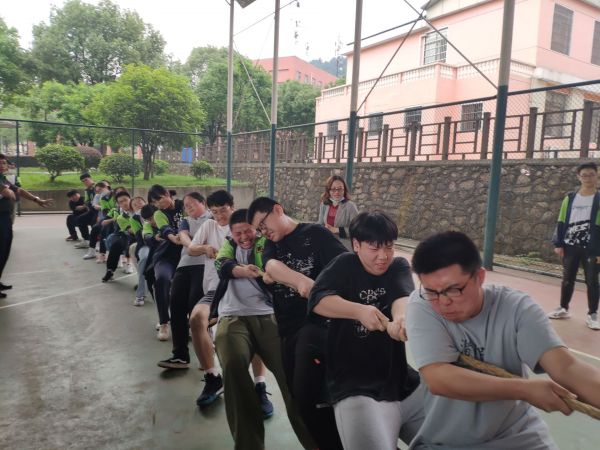 作为体育委员(右五),为了班级荣誉他总是不遗余力。(学校供图)