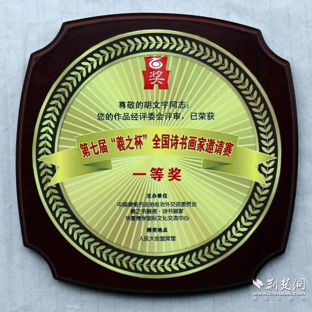 第七届“羲之杯”全国诗书画家邀请赛一等奖奖牌。胡文宇 供图