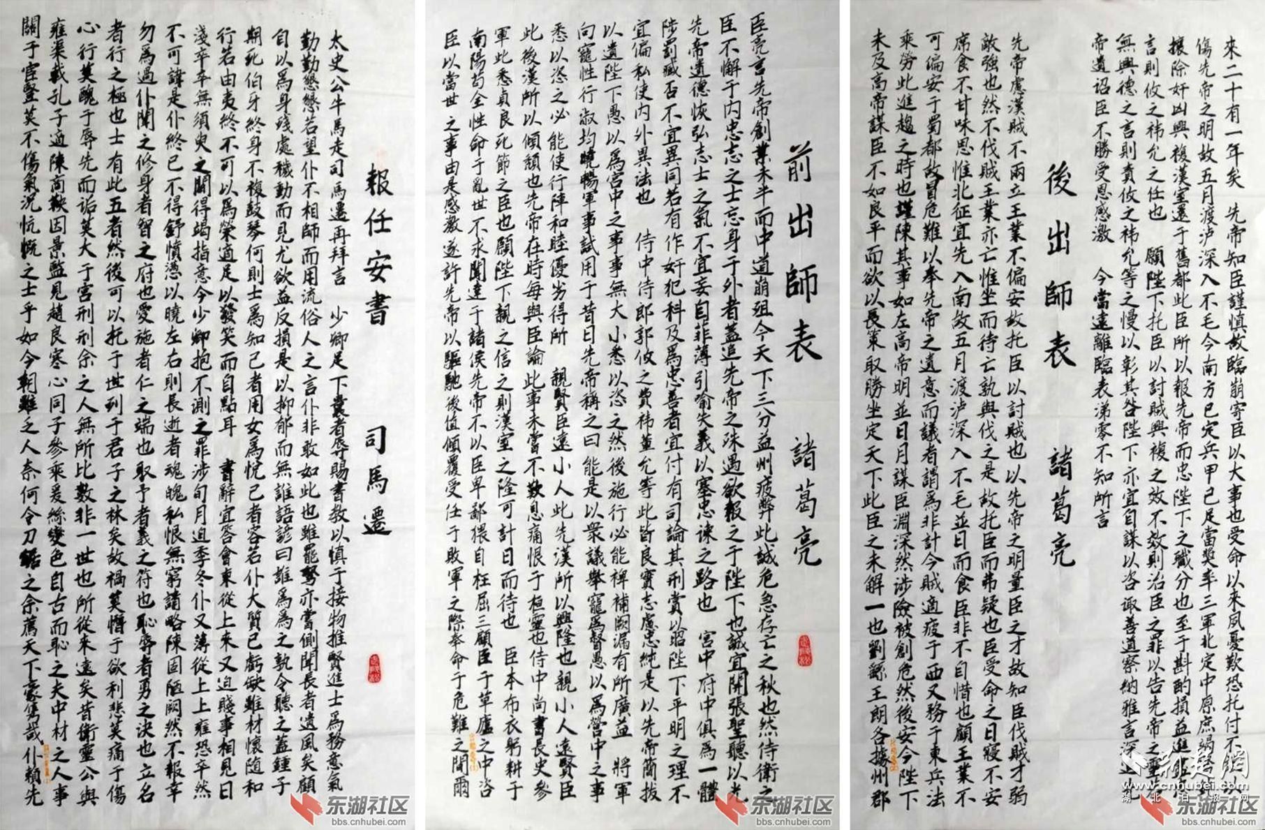 从左至右依次为书法作品《报任安书》《前出师表》《后出师表》部分截图。