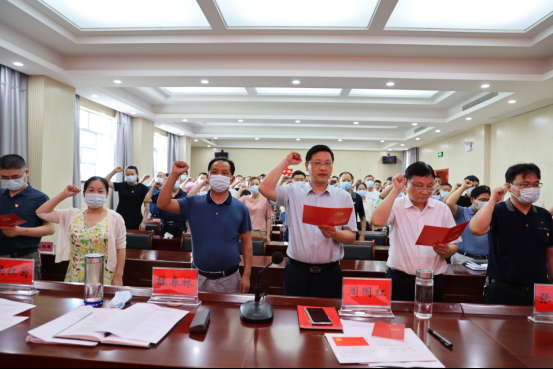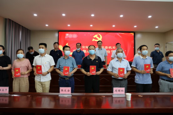 现场,安陆市纪委监委主要负责人为两名入党满50周年的老党员颁发“光荣在党50年”纪念章,带领全体党员一起重温入党誓词、诵读党章,为10名入党干部过集体“政治生日”,以《从中共百年历史中汲取前进的力量》为题,从革命、建设、改革三个方面为全体党员上党课。