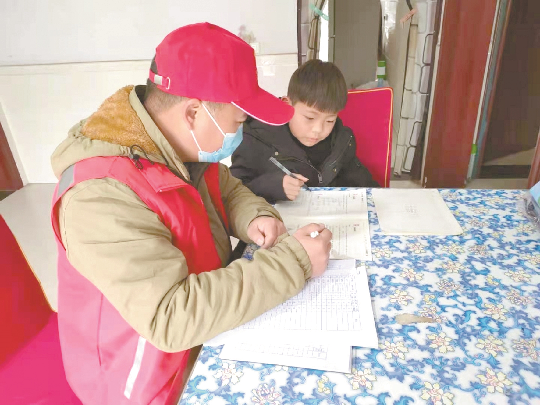在社区“四点半课堂”,下沉党员变身“家教”为孩子辅导功课。