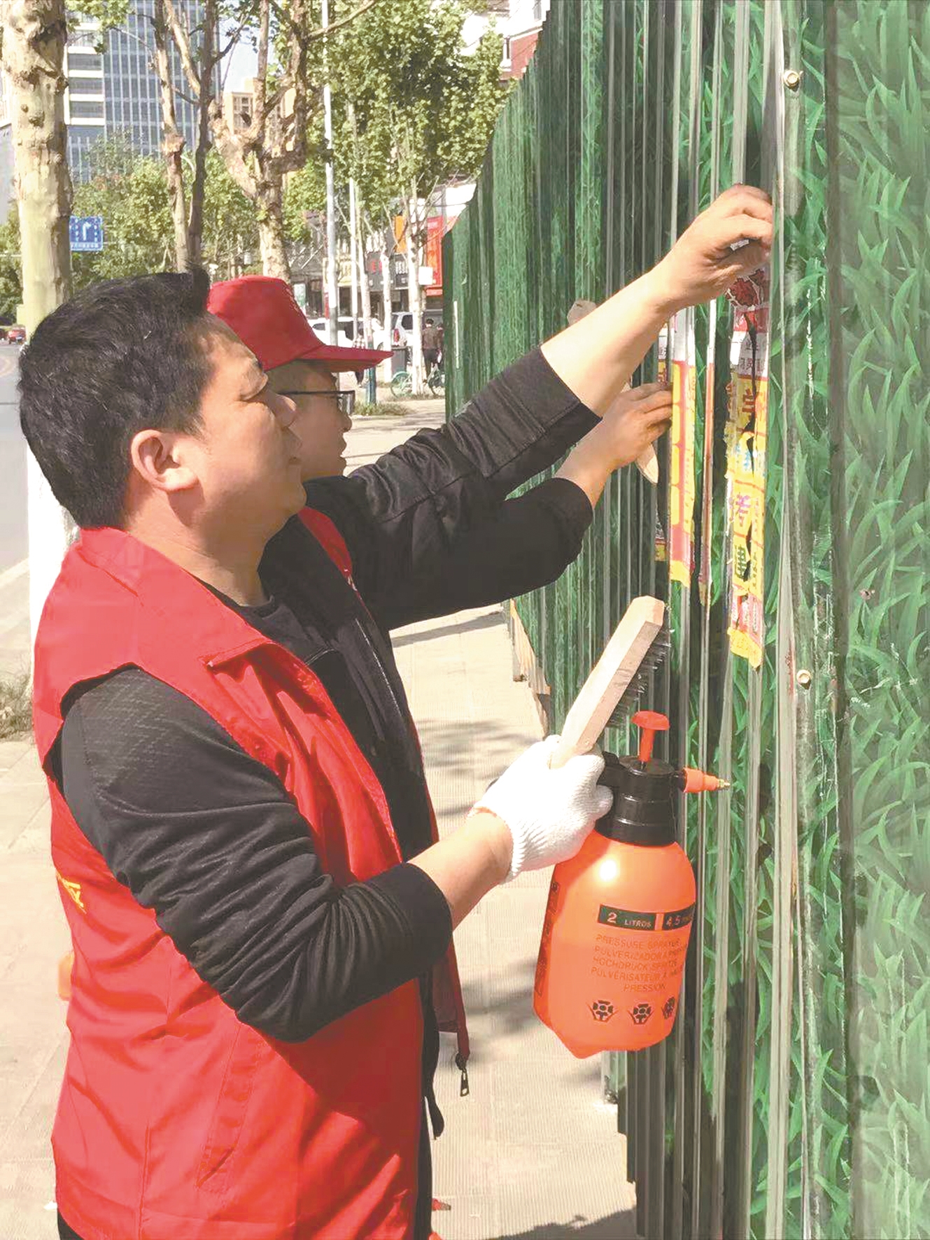 志愿者走上街头,开展创建全国文明城市志愿活动。