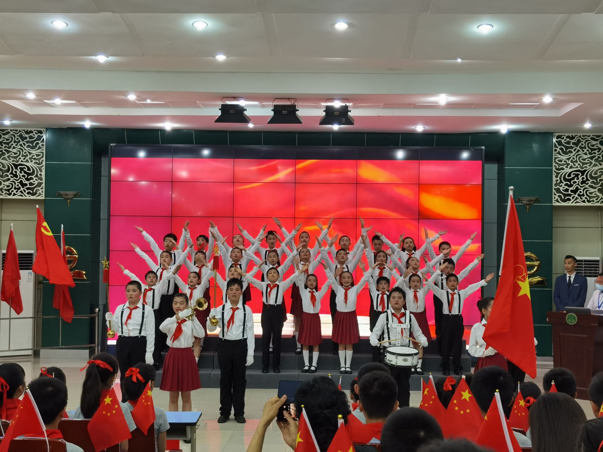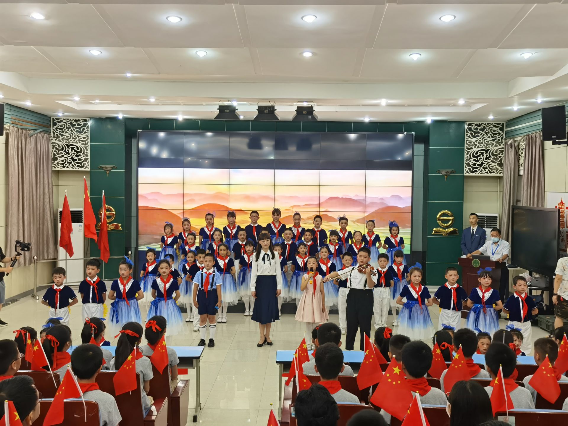 荆楚网(湖北日报网)讯(通讯员 周茜)童心齐向党,争做好少年。6月30日,“童心向党 喜迎七一”系列活动在武昌实验小学举行,百余名师生齐聚一堂,讲读红色故事、诵唱红色歌曲、传承红色基因,共庆中国共产党百年华诞。