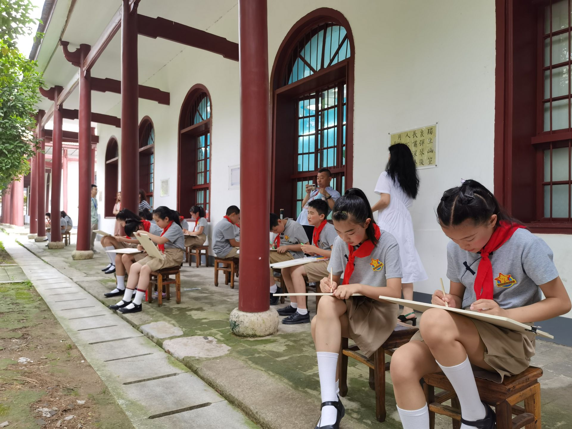 随后,参加活动的学生代表现场进行创意写生,以翰墨丹青书绘党的光辉历程,献礼建党百年。