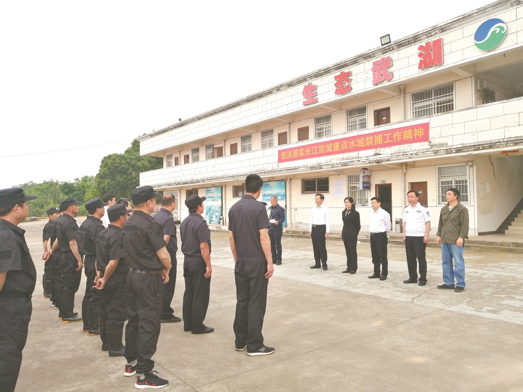 武汉市委常委会多次专题研究,禁捕退捕领导小组11次召开全市大会,市委、市政府主要领导和分管领导靠前调度部署,多次深入江边、水上、码头、渔民家中、农贸市场等处督导禁捕退捕工作。先后印发了禁捕工作暗查暗访工作机制、常态化联合执法打击工作方案、禁捕网格化管理实施意见等制度文件,固化了公安、渔政、市场监管、交通运输等部门联合执法的工作机制,并将长江“十年禁渔”工作纳入河湖长制考核体系,形成全覆盖、多层面、立体化巡查监管体系。