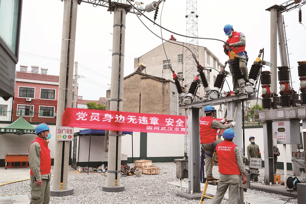 国网武汉供电公司坚持把支部建在电网建设项目上,把党旗立在施工工地上,全面推行“项目部+党支部”“三同三有四进”工作模式,做到项目部和党支部同时成立、同时建设、同时履职,实现关键岗位有党员领着、关键工序有党员盯着、关键环节有党员把着。
