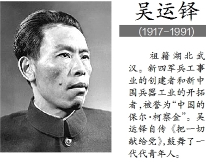 在极为艰苦的革命岁月里,“中国的保尔·柯察金”吴运铎带着7个学徒,每年为前线生产子弹60万发。为给前方将士研发枪弹,他四次负重伤,浑身上下有200多处炸伤,4根手指被炸断,左眼被炸瞎,一条腿被炸断。
