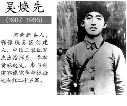 在鄂豫皖边区,吴焕先“破家革命,揭竿而起”,率紫云区农民武装参加黄麻起义,参与创建鄂豫皖革命根据地和红二十五军。