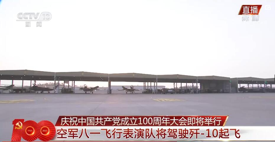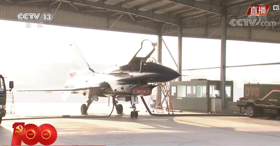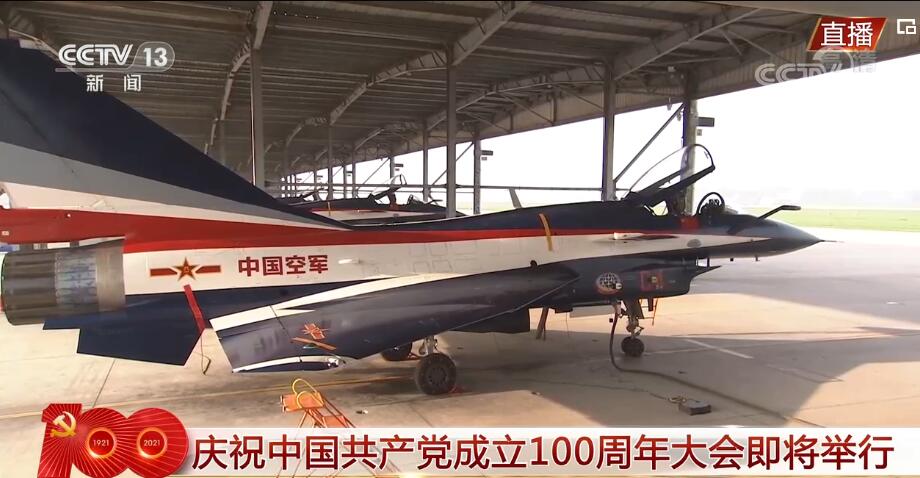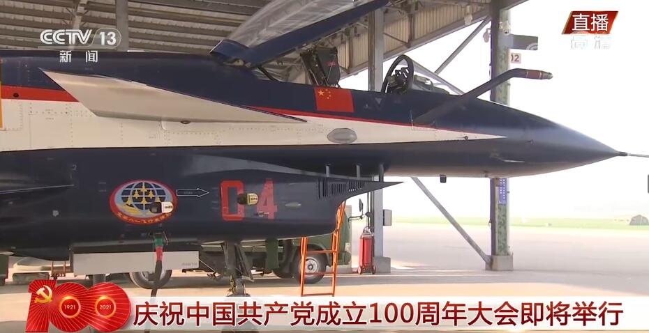 央视网消息: 在庆祝中国共产党成立100周年大会上,中国人民解放军空中梯队飞越天安门上空进行飞行庆祝表演,包括空军八一飞行表演队和歼-20战机编队。在视频直播中,歼-20战机的机库曝光。