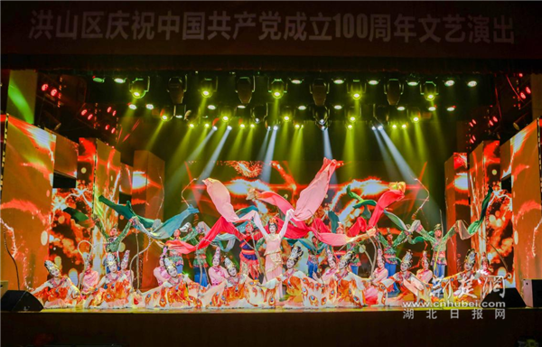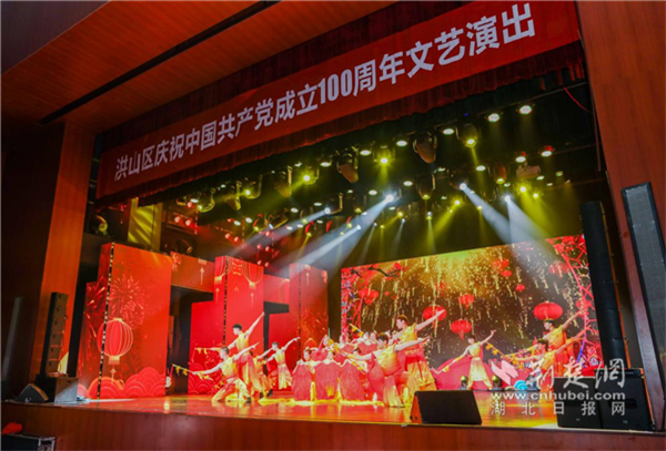 荆楚网(湖北日报网)讯(通讯员陈非、谭璇、王璟)6月29日下午,在武汉市洪山区文化大厦400剧场,洪山区举行庆祝中国共产党成立100周年文艺演出。