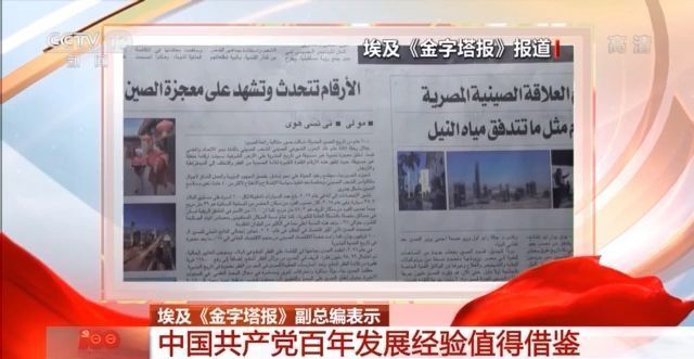 埃及《金字塔报》副总编 塔里克·苏努提:中国共产党成立百年来,所积累的发展经验是巨大的财富。今年是中国共产党成立100周年,《金字塔报》也对此予以关注,并且重点报道了中国在经济发展方面的成就,以及中国共产党的各项政策。而且《金字塔报》还开始将这些成功经验介绍给埃及和非洲的政治家们。