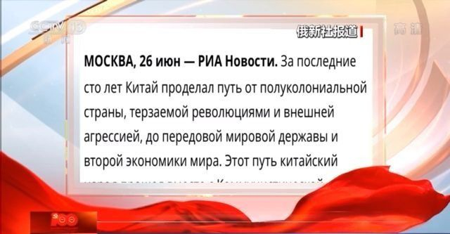 俄新社发表题为《史无前例的跨越——中国共产党的百年辉煌》的观察报道。文章称,中国在共产党的领导下进行了大刀阔斧的改革,人民生活发生了翻天覆地的变化。中国在2020年的疫情之年成为全球唯一实现正增长的主要经济体。中国共产党建党100周年是一座新的里程碑,中国未来必将沿着中国特色社会主义道路继续前行,并对世界进程产生更大影响。