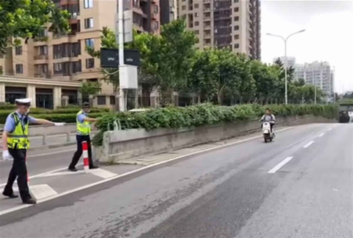 6月30日上午9时许,江汉区交通大队民警胡维雄巡逻至陈家墩机动车地下通道时,发现一辆灰色电动车正在机动车道内飞驰,其它车辆经过时纷纷减速让行,十分危险。胡维雄赶紧将电动自行车护送出陈家墩地下通道,并要求驾驶员靠边停车。
