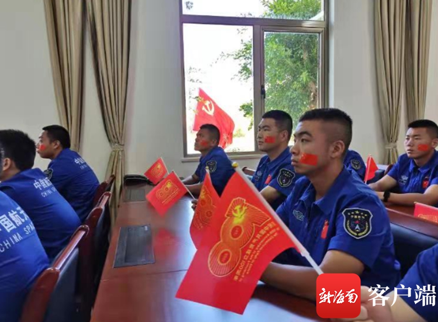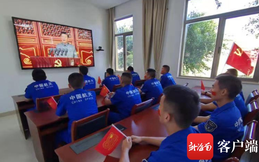 上午7时40分,测控区的航天工作者早早来到会议室,他们脸上洋溢着喜悦和兴奋之情,等待着庆祝中国共产党成立100周年大会直播。
