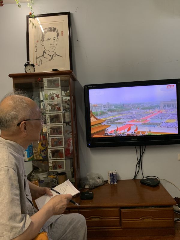 甘子久收看庆祝中国共产党成立100周年大会。家属供图。
