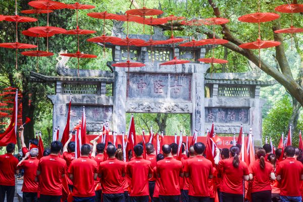 7月1日当天,隆中景区首先组织全体党员、干部在党员活动室集中收看中国共产党成立100周年大会,随后宣布“2021·隆中红”活动正式启动,开展百人方阵共唱红色歌曲活动,景区全体党员重温入党誓词。活动启动仪式上,隆中景区发布了精心设计的“2021·隆中红”主题沉浸式互动游产品、诸葛亮勤政廉政文化游线。