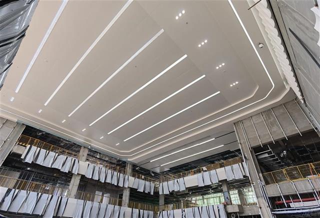 7个月要完成25万多平方米的机电安装任务,机遇与挑战并存。据了解,项目机电部分于2020年12月进场,面对210天的紧迫工期,项目团队迅速整合资源,并采用“机电总承包”模式,在现场设置一个总包部、6个片区突击队的“1+6”管理体系结构,以“管施分离”原则展开施工。