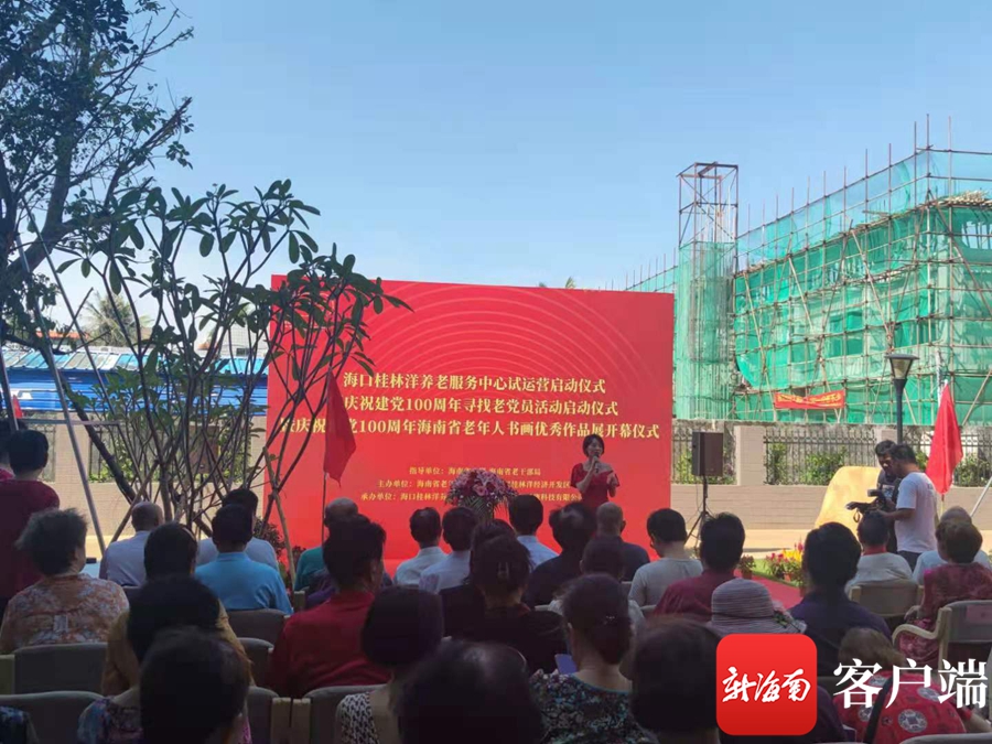 试运营启动仪式当天,现场还举办了庆祝建党100周年寻找老党员活动和海南省老年人书画优秀作品展开幕仪式。“为表达对老党员的崇高敬意和关爱之情,我们将寻找10名党龄50年以上、年龄65周岁以上,并符合相关条件的老党员,为其提供终身免床位费入住的福利。”该中心负责人介绍。