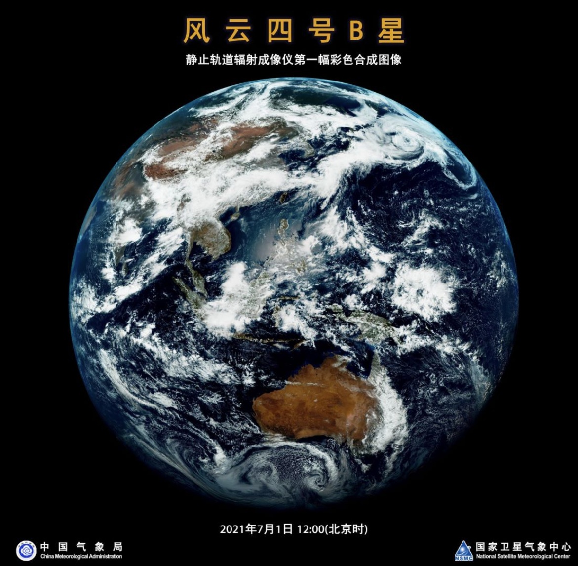 风云四号B星于6月3日成功发射,是我国第二代静止轨道气象卫星首发业务星,主要应用于天气分析和预报、环境和灾害监测等领域。处于在轨测试中的该星,成功获取首批高精度数据和图像产品。在全圆盘卫星云图上,天山的积雪、青藏高原的湖泊、河套区域的地表纹理、东北华北区域的对流云团、南北半球高纬度区域的涡旋云系等清晰可见。在1分钟、250米分辨率的全色波段图像产品和500米分辨率真彩色合成图的图像和动画产品上,对流云团的精细化结构和发展演变过程一目了然。值得一提的是,此次产品生成应用机器学习技术,实现真彩色的大气订正。