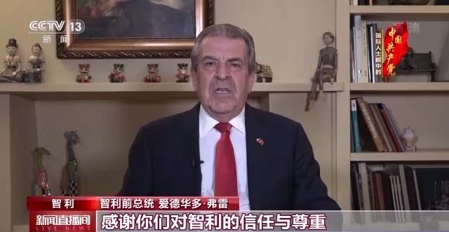 智利前总统 爱德华多·弗雷: 中国共产党百年华诞举世瞩目,我向中国人民表达我的祝贺,我还要向中国所有的政府机构送上祝福。感谢你们对智利的信任与尊重,与我们共同协商并推动让双方获益的全面协议,共建两国人民美好的未来。