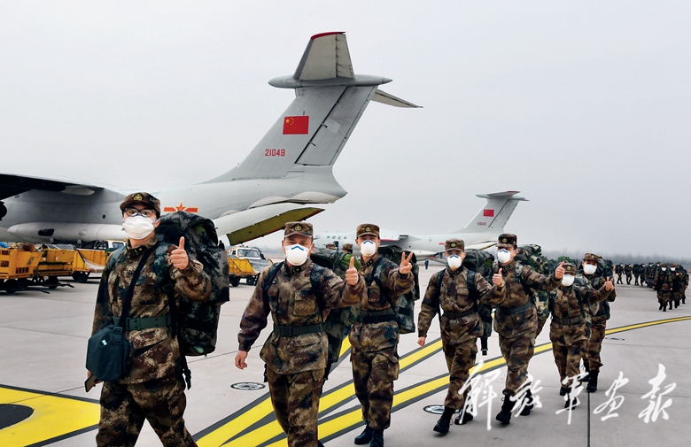 2020年2月2日,空军出动8架大型运输机,紧急空运军队支援湖北医疗队队员抵达武汉天河机场。