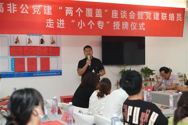湖北日报讯 (记者严运涛、通讯员邓洲、王小林)6月30日,武汉市洪山区个私协会总支洪山支部举行提高非公党建“两个覆盖”座谈会暨党建联络走进“小个专”授牌仪式,市场监督管理部门与“小个专”企业党员代表就开展党史学习教育和促进规范经营深入交流,用一场“优化营商环境基层行”向建党100周年献礼。