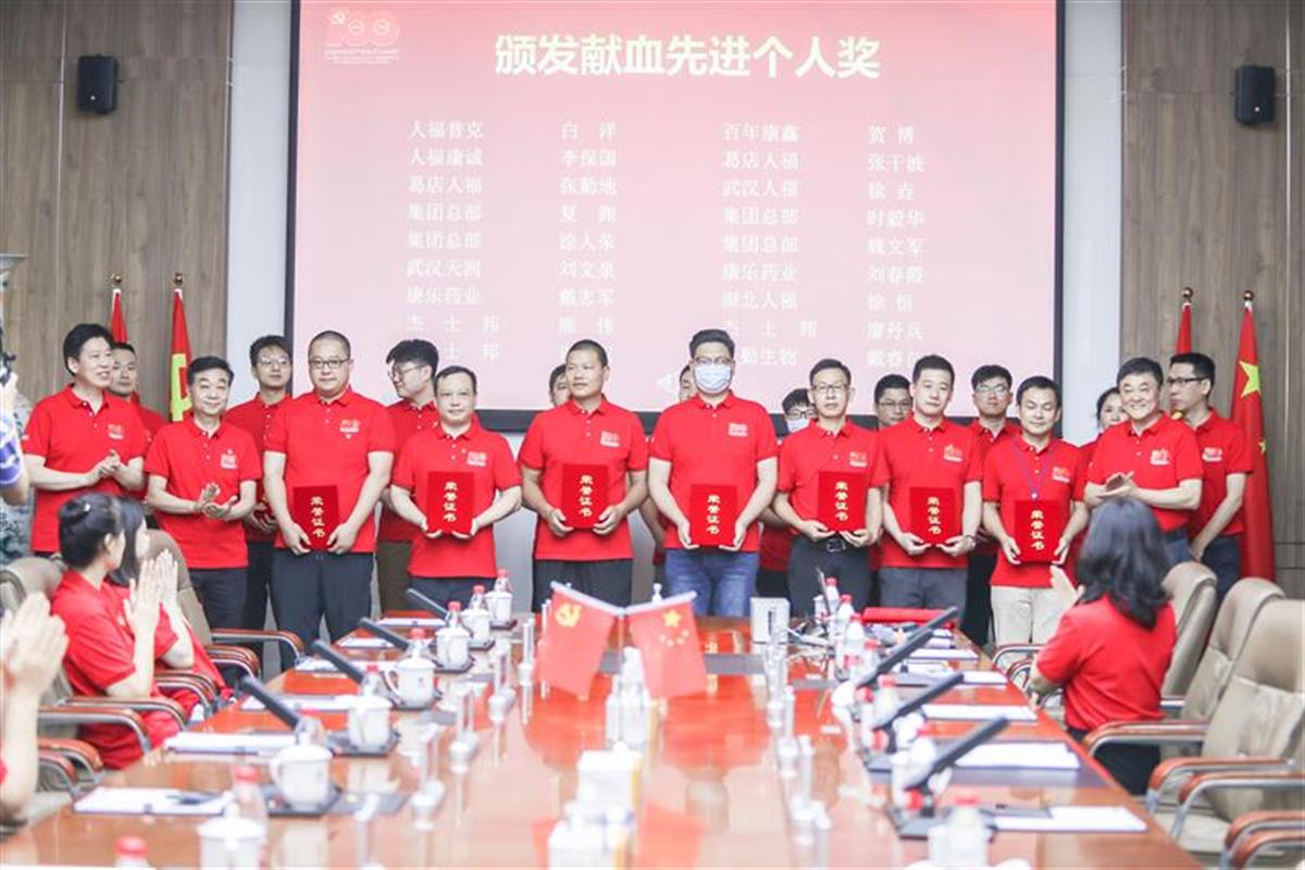 “人福医药集团以党建为引领,连续五年组织大型团体献血活动,以实际行动践行爱心企业的责任与担当,是先锋楷模,也是热血榜样。”据武汉血液中心党委书记周志华介绍,此次“党旗飘扬,热血人福”党建品牌活动是武汉血液中心党委和人福医药集团党委开展党建结对共建活动第一场,今后还将继续推进党企融合联动,希望广大党员发挥先锋模范带头作用,带动更多的爱心人士加入到无偿献血队伍中来。