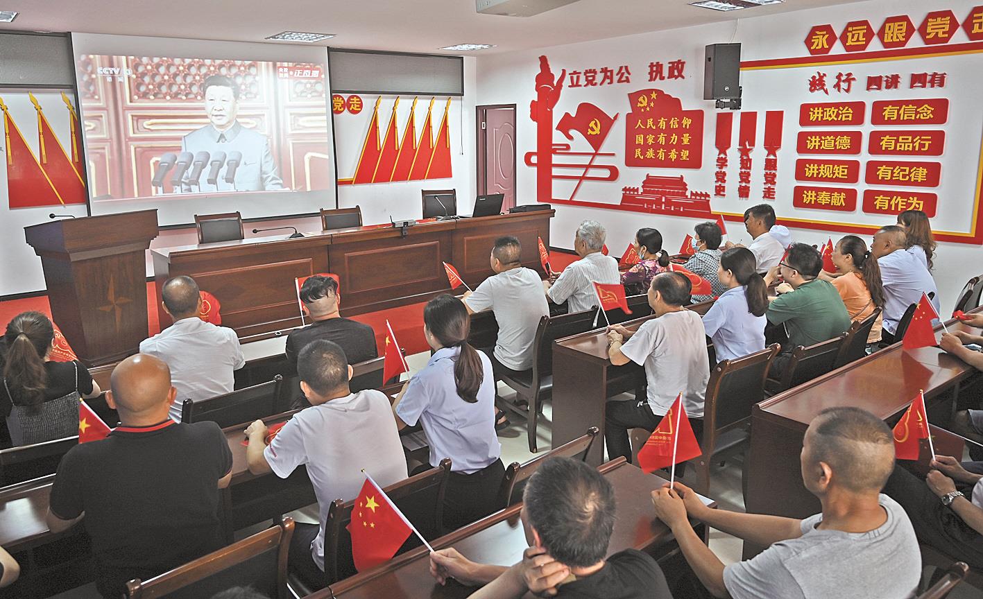 7月1日上午,宜昌各地党员干部集中收看庆祝中国共产党成立100周年大会直播,认真聆听习近平总书记重要讲话。 (湖北日报全媒记者 刘曙松 通讯员 李重庆 摄)
