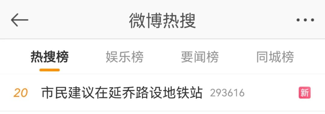 今天,“市民建议在延乔路设地铁站”的话题冲上热搜。