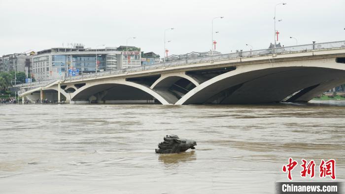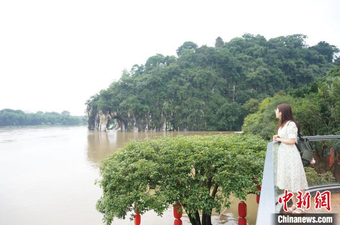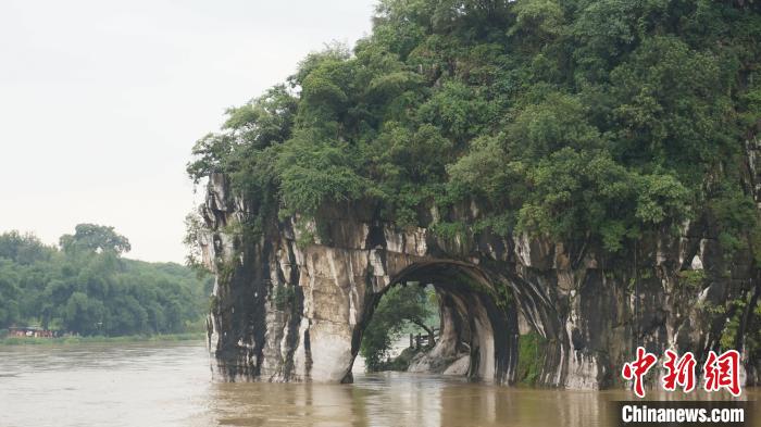 7月3日,处在洪水中的桂林城徽象鼻山呈现“大象喝水”景观。 欧惠兰 摄