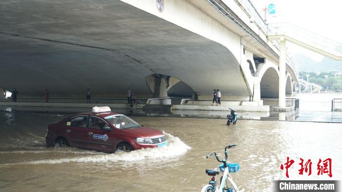 7月3日,江水漫过桂林市解放桥下通道形成积水。蒋丰慧 摄