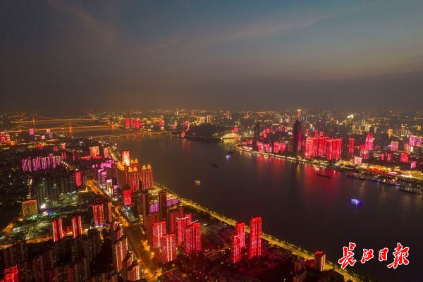 绚丽的光影展现出江城的无限魅力,自展播以来,建党百年主题灯光秀装扮下的武汉夜景成为焦点和热点。23日晚8时35分,央视《东方时空》将镜头对准武汉,用5分38秒直播武汉庆祝中国共产党成立100周年主题灯光秀;24日晚,央视新闻联播也呈现了长江灯光秀的壮阔美景。在央视直播镜头中,错落有致的高楼统一披上了“中国红”,龟山电视塔光影流动,长江大桥车水马龙,江上游船如在画中漂移。主持人感慨地说:“英雄城市向着梦想前行”。