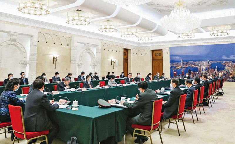 2021年3月,十三届全国人大四次会议通过了修改后的《全国人民代表大会组织法》。图为2021年3月8日,第十三届全国人大宪法和法律委员会召开全体会议,根据各代表团的审议意见,对全国人民代表大会组织法修正草案、全国人民代表大会议事规则修正草案进行统一审议。 新华社记者 张玉薇/摄