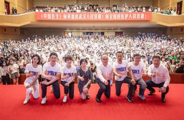 7月4日,由博纳影业集团、珠江电影集团、湖北长江电影集团领衔出品的中国首部全景式战疫影片《中国医生》,在武汉洪山礼堂举行隆重的首映礼。电影中的人物原型“人民英雄”张定宇、全国抗疫先进人物长张继先,以及医务工作者、医学院师生、公安交管、城管、社区工作者代表等一千余人观看了电影首映。
