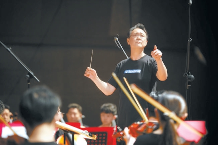 指挥家谭利华指挥北京交响乐团。本报记者 方非摄