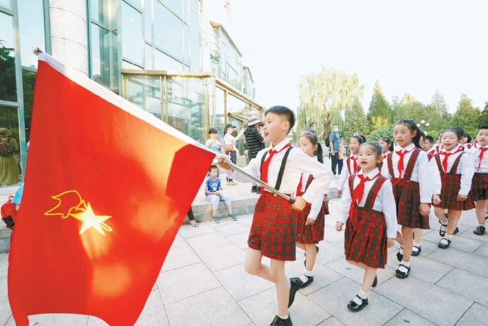 春天童声合唱团在中山公园行进演唱《我们是共产主义接班人》。本报记者 方非摄