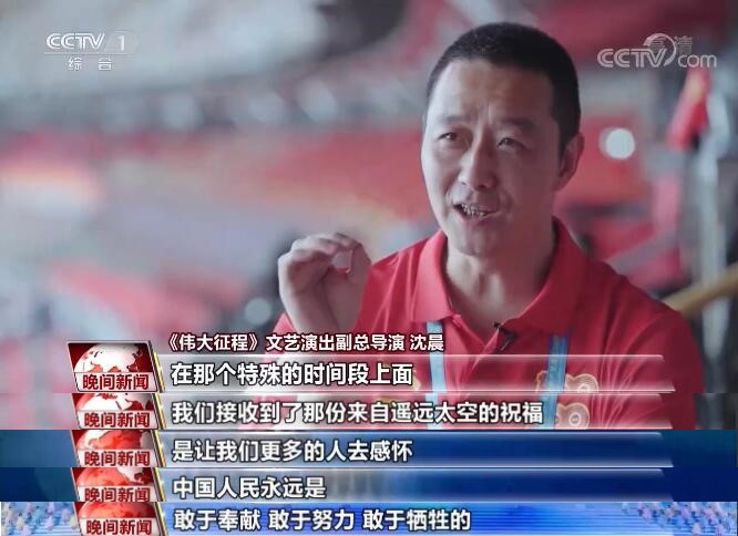 《伟大征程》文艺演出副总导演 沈晨:在那个特殊的时间段上面,我们接收到了来自遥远太空的祝福,是让更多的人去感怀,中国人民永远是敢于奉献、敢于努力、敢于牺牲的。